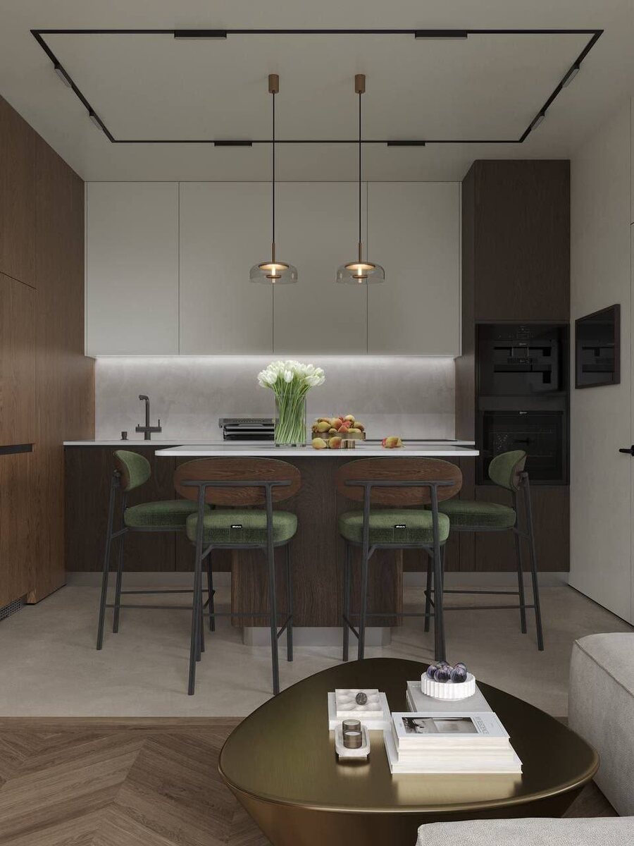 ? Когда площадь кухни-гостиной ограничена, возникает желание выбрать только один вариант. ⠀ С одной стороны — обеденный стол: традиционный элемент, удобный для всей семьи. С другой — остров: обеспечивает больше рабочей поверхности, дополнительное место для хранения и служит современным акцентом в дизайне. ⠀ Как вы считаете, что лучше подойдет для этого проекта? Пишите в комментариях — интересно узнать ваше мнение _______ С уважением к вашему пространству и любовью к своему делу — ваша студия дизайна интерьера «5 элемент» ♥️ Заказать проект: +7 (949) 071-00-50 Сайт: https://5elementdesign.ru