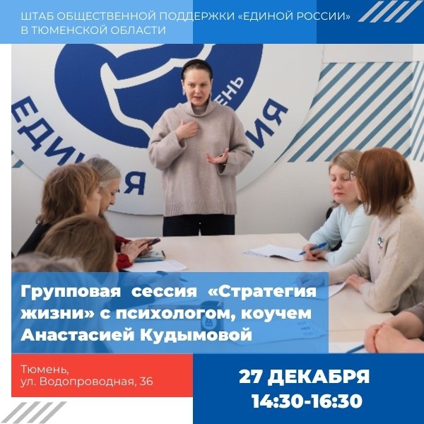 Β» β³ΠΠΎΠ³Π΄Π°: 27 Π΄Π΅ΠΊΠ°Π±ΡΡ, 14:30β16:30 πΠΠ΄Π΅: Π¨ΡΠ°Π± ΠΎΠ±ΡΠ΅ΡΡΠ²Π΅Π½Π½ΠΎΠΉ ΠΏΠΎΠ΄Π΄Π΅ΡΠΆΠΊΠΈ Β«ΠΠ΄ΠΈΠ½ΠΎΠΉ Π ΠΎΡΡΠΈΠΈΒ» (Π³. Π’ΡΠΌΠ΅Π½Ρ, ΡΠ». ΠΠΎΠ΄ΠΎΠΏΡΠΎΠ²ΠΎΠ΄Π½Π°Ρ, 36) πΠΡ