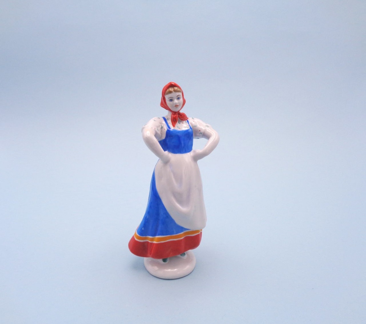 Плясунья. 1950 - е годы. ЛФЗ. Роспись надглазурная полихромная. Скульптор С. Б. Велихова. Художник Л. И. Григорьева. Высота - 16.5 см. Хорошее состояние, без сколов трещин и реставрации. Цена 6000 рублей. xn--80agoiniomc.xn--p1ai/ #коллекционное #Ленинград #коллекция #фигурки #клеймо #ручнаяработа #нечастая #состояние #редкость #лфз #советский #фарфор #фарфоровые #статуэтки #редкая #девушка #подарок #ЛФЗ #СССР #оригинал #роспись #сказки #фигурка #интерьер #отличноесостояние #коллекционирование #раритет #винтаж