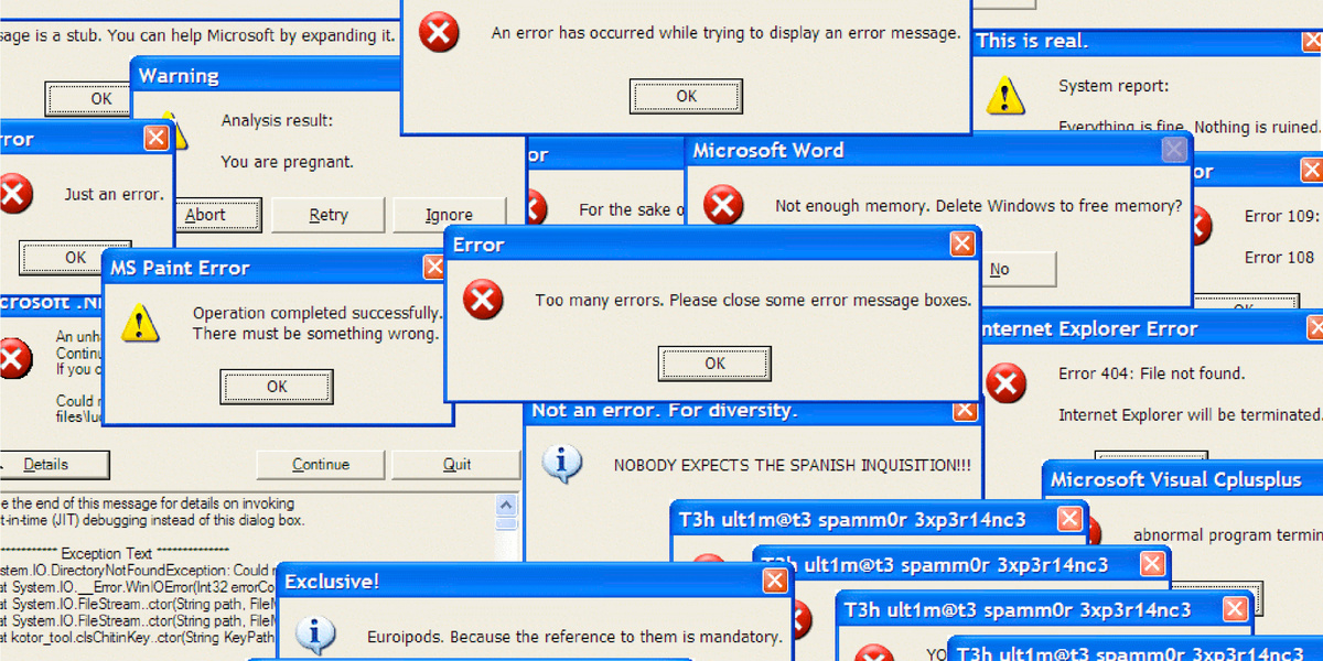 Без подробностей. Без инструкции. Максимум — кнопки «ОК», «Отмена» или «Закрыть».