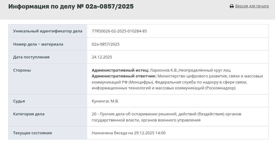 Истцы требуют, чтобы суд признал действия Роскомнадзора и Минцифры незаконными и отменил все ограничения, касающиеся голосовых вызовов в мессенджерах. Они аргументируют свою позицию тем, что такие меры ущемляют права граждан на свободное общение и доступ к информации.