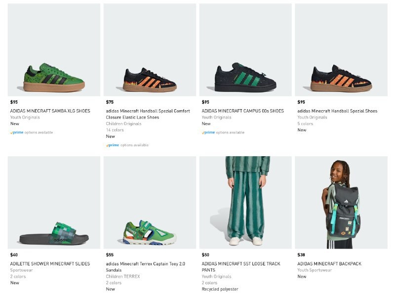 Adidas и Minecraft объединили усилия, выпустив обширную коллекцию мерча, включающую одежду и аксессуары
