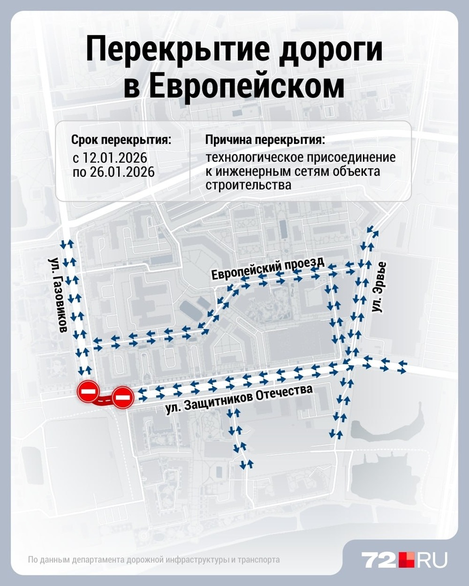 В Европейском районе закроют улицу Защитников Отечества для проезда в районе перекрестка с Газовиков. Причина: присоединение к инженерным сетям. Судя по всему, это связано с продолжением строительства скандальной трассы в Европейском — активная фаза должна начаться сразу после праздников. Пути объезда: улицы Алебашевская, Газовиков, а также проезд Европейский.