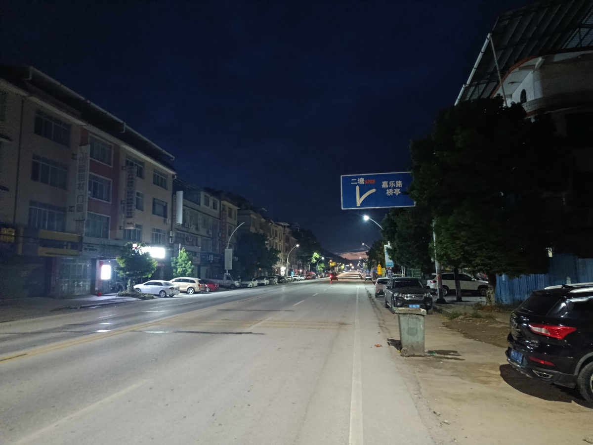 Выезжал я в 6 утра, еще до рассвета. Ведь мне надо не просто доехать до пункта назначения, но и посмотреть город. Темная и пустая улица города Пинле.