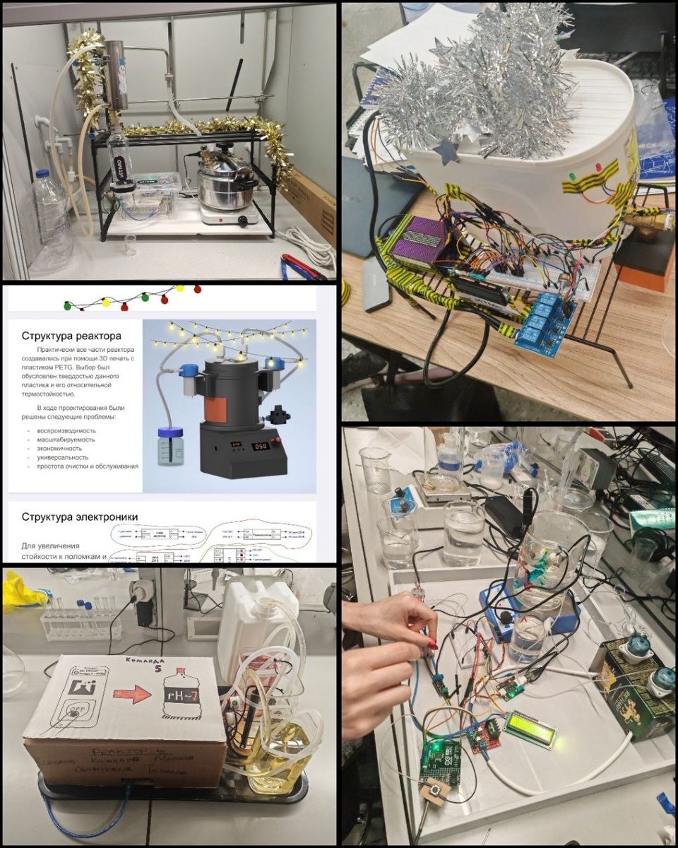 Задача была, объединившись в команду, в рамках бюджета сделать настольный реактор на 1 литр, содержащий не менее двух датчиков, управляющих не менее чем двумя процессами по заданному алгоритму. Считаю, что такая работа очень важна для студентов, особенно инфохимиков, многие из которых погружены в чисто теоретическую науку: молекулярное моделирование, расчеты, хемометрика и пр. Практикумы есть, но одно дело, когда смешиваешь две пробирки, по методичке титруешь или воспроизводишь данные по статье (хотя и тут бывают нюансы, как знают коллеги), совсем другое - когда собираешь и программируешь настоящую рабочую модель. Ребята взяли простые рутинные процессы, часто требующие масштабирования и автоматизации в реальной жизни: нейтрализация стоков, гидролиз сахарозы, экстракция белка, микробилогический синтез и пр., собрали модель и запрограммировали автоматическую работу. Тут-то и вылезло, что: -электротехника это наука о надежности контаков, -если что-то замкнуть, оно может сгореть насовс
