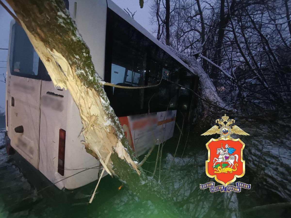 Автобус в Ступино съехал в кювет и врезался в дерево