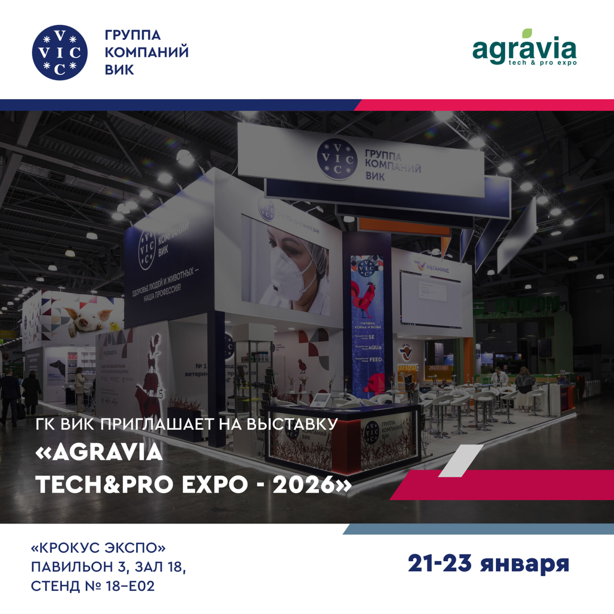 Группа компаний ВИК примет участие в Международной выставке технологий производства и переработки для профессионалов АПК AGRAVIA TECH & PRO EXPO – 2026, которая состоится в Москве с 21 по 23 января 2026 года в «Крокус Экспо», павильон 3, зал 18. Программа ГК ВИК насыщена ключевыми отраслевыми событиями, которые станут важными точками обсуждения актуальных трендов и решений для российского АПК: В рамках дискуссии ведущие эксперты, аналитики и руководители отраслевых ассоциаций представят глубокую оценку текущей ситуации в отечественной животноводческой отрасли, обсудят актуальные вызовы, внедрение технологических решений, новые возможности и успешные экспортные стратегии. Регистрация на мероприятие обязательна — переходите по ссылке В зале 14, стенд № 14 В44, ГК ВИК совместно с Inline представит новый ИИ-проект АГРОПРЕДИКТ — цифровую платформу для промышленного птицеводства и свиноводства. Решение предназначено для прогнозирования производственных и ветеринарных рисков, аналитики ключе