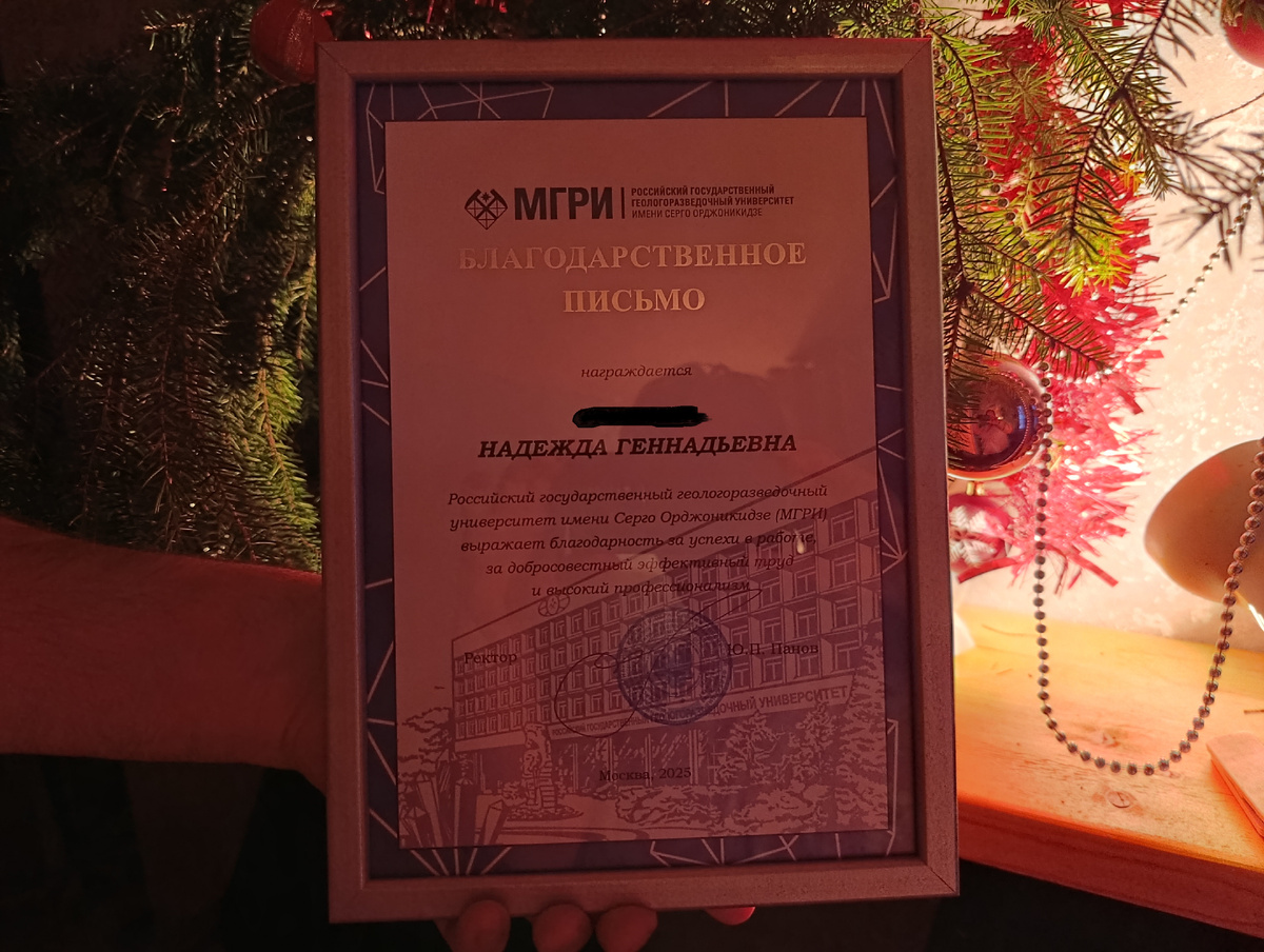 Попытки «наградиться» были и раньше – мою кандидатуру с ещё одной коллегой с нашей кафедры до нынешнего года дважды выдвигали от факультета на то или иное награждение, но каждый раз это заканчивалось ничем. А в последний раз (накануне нового 2024 года) руководством были отмечены трудовые заслуги даже охранников и техничек, а вот нас с той коллегой прокатили – ну что, мы с ней это коротко обсудили и решили, что значит недостаточно хорошо работаем. И вот теперь, когда в начале декабря текущего года завкаф написала мне в личном сообщении, что меня (опять в паре с той же коллегой) на факультете вновь решили выдвинуть на награждение, то я восприняла эту новость с иронией и даже с сарказмом, ожидая, что как и предыдущие два раза наши кандидатуры где-то наверху не одобрят. Но в этом году награду всё-таки дали. И я теперь на своей шкуре прочувствовала справедливость поговорки, что главное не подарок, а внимание.