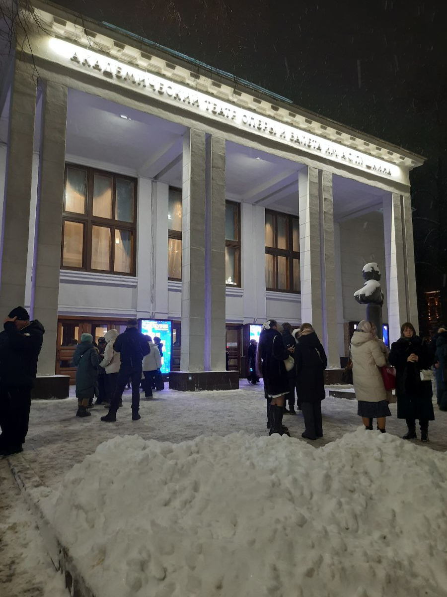 Здравствуйте, дорогие мои друзья! Сегодня сбылась моя мечта, я наконец-то попала на балет "Щелкунчик" в наш нижегородский театр оперы и балета. У нас сегодня компания получилась большая, ездили ученики из всех четырёх 9 классов, из 10 и 11, не все, а кто хотел и успел купить билеты. Учителя без классов, некоторые взяли родственников, пара родителей была. В общей сложности 70 человек на 2 автобусах. Со мной Катюшка ездила. На входе традиционная новогодняя ель. Перед спектаклем мы с Катериной зарулили в буфет. Её шампанское, мой КоньЯк и 2 плохо жующихся бутербродов. Отдали...как в анекдоте "лучше я скажу, что меня ограбили цыгане". Только расположились за столиком, тут же две пары глаз девиц из 9 класса. Успели выпить, их парни нарисовались :"А нам сказали, что вы вино пьёте". Я умирала со смеху над своей Катей, вернее над её комментариями. Сделала вывод, что всё непонятно, все суетятся, мыши какие-то прыгают. Ещё лучше отзывы о спектакле наших учеников. Мальчишка из Юлиного класса