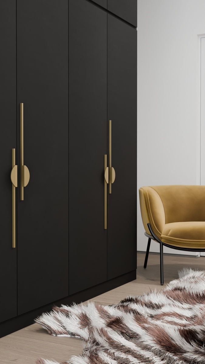 - Безупречная эргономика: ручка идеальна для дверей шкафов-купе и высоких шкафов с распашными фасадами, а также для широких комодов. Она позволяет с комфортом открывать дверь или выдвигать ящик, обеспечивая равномерное распределение усилия.