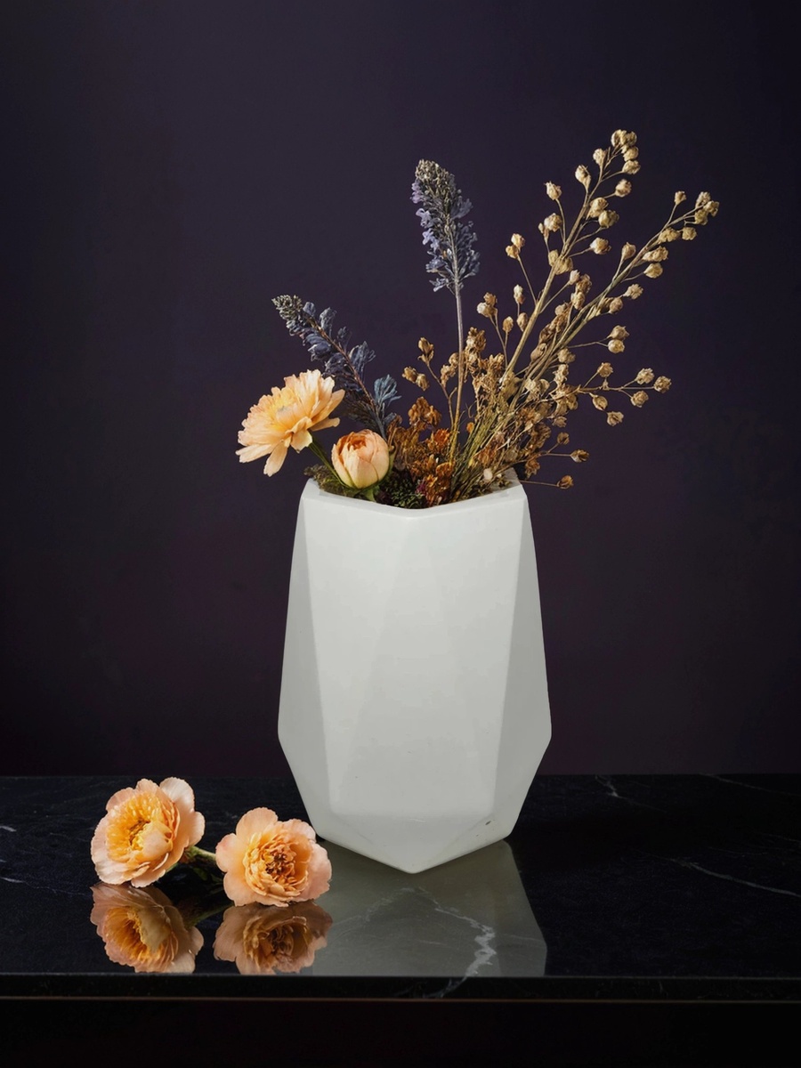- Стилевой ключ: Минимализм. Чистая белая или гипсовая поверхность вазы не перегружает пространство, а, наоборот, структурирует его. Такая интерьерная деталь в духе скандинавского подхода доказывает, что порядок и красота идут рука об руку.