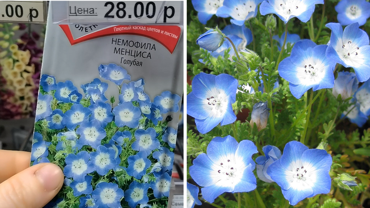 В этой статье покажу семена неприхотливых цветов, которые буду сеять в 2026 году, они цветут все лето в саду. Немофила очень красивый, обильноцветущий однолетник с небесно-голубыми цветками. Именно за этот цвет цветков я ее полюбила, хотя бывают и другие расцветки. Она неприхотлива в выращивании и широко используется в озеленении участков. Её можно посадить рядом с водоёмами, в контейнерах, в бордюрах клумб и цветников, а также на альпийской горке. Немофила в высоту около 20 см. Хорошо растет на солнечном месте в рыхлой питательной почве. Растение холодостойкое. Не поражается болезнями и вредителями. Пышно цветет все лето. Посеять немофилу можно в марте, тогда она начнет цвести в начале лета, также можно посеять ранней весной сразу в грунт. Еще один красивый редкий однолетник Нолана - это почвопокровное низкое растение. Хорошо растет на альпийской горке, на клумбах и в подвесных кашпо. Высота растений около 15 см. Одно растение высаженное в грунт, может разрастись в ширь до одного м
