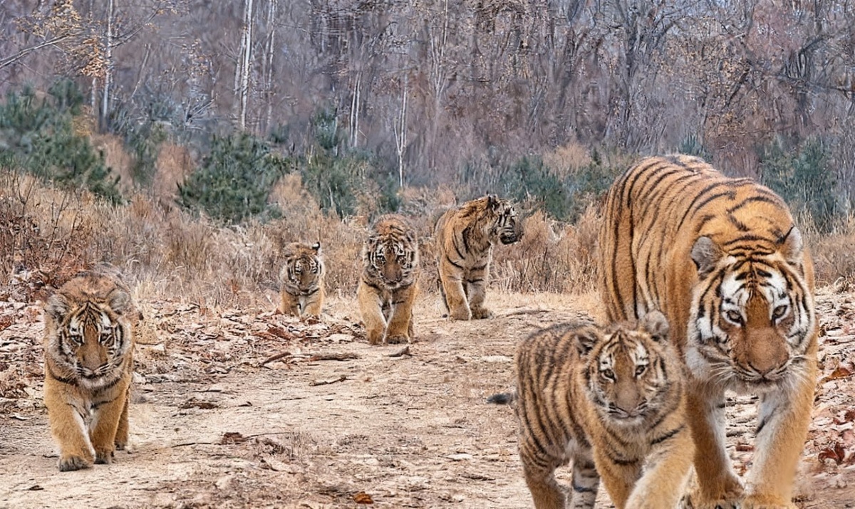 26 декабря в Северо-Восточном национальном парке, где проживают тигры и леопарды, был замечен амурский тигр вместе с пятерыми своими