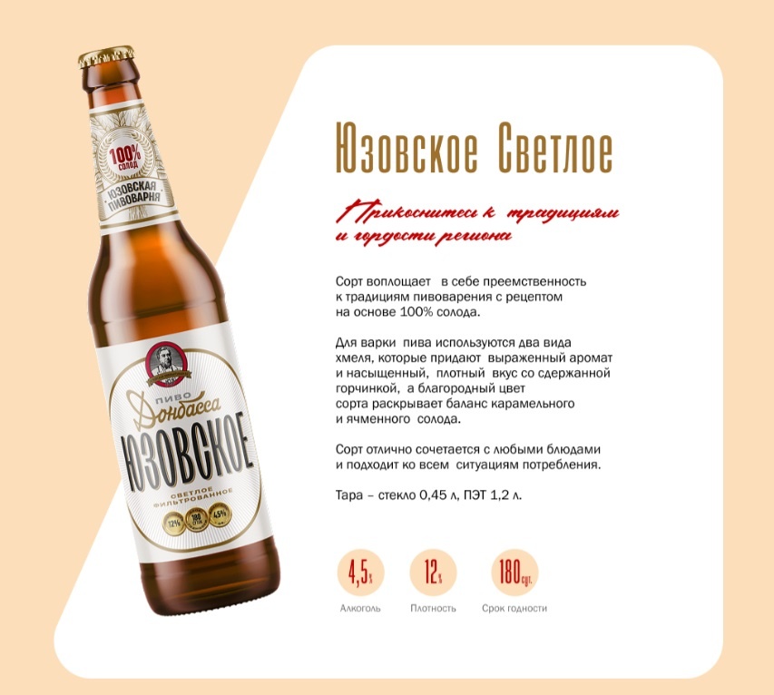 Изготовлено по лицензии и под контролем Юзовской пивоварни (ООО "Валена"), г.Донецк. Изготовитель: ООО "Пивоваренная компания "Балтика". Сварено: филиал "Пивзавод "Южная Заря", г.Ростов-на-Дону Ростовской области. На сайте пивоварни имеется описание: ********************************************************************************** Плотность: 12%. Состав: вода питьевая очищенная, солод пивоваренный ячменный светлый и карамельный, хмелепродукты. Срок годности: 180 суток с хранением при температуре от 0℃ до +30℃. С даты розлива моей бутылки прошло 3.5 месяца. ********************************************************************************** Шапка пены на месте; стойкость средняя, но раствориться полностью не спешит. В аромате солод, хлеб, карамель и немного зернового оттенка. Карбонизация умеренная. Вкус солодовый с сильным хлебным привкусом и сладостью карамели. Проскакивает зерновой привкус. Слегка чрезмерная кислинка на конце глотка. Послевкусие сухое кисленькое с едва заметной горчин