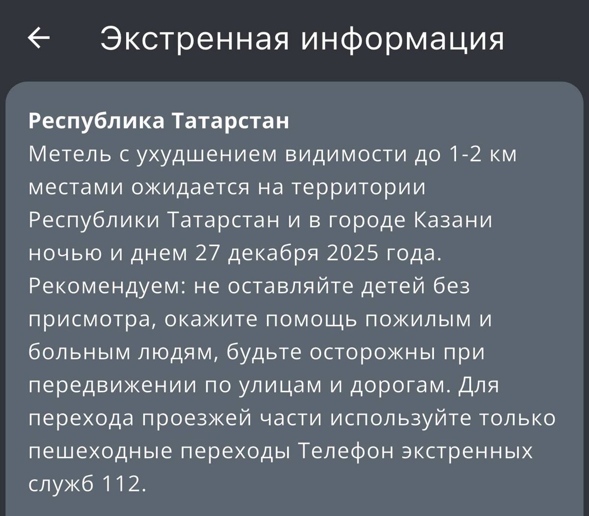 МЧС предупредило жителей Татарстана об ухудшении погодных условий завтра, 27 декабря.