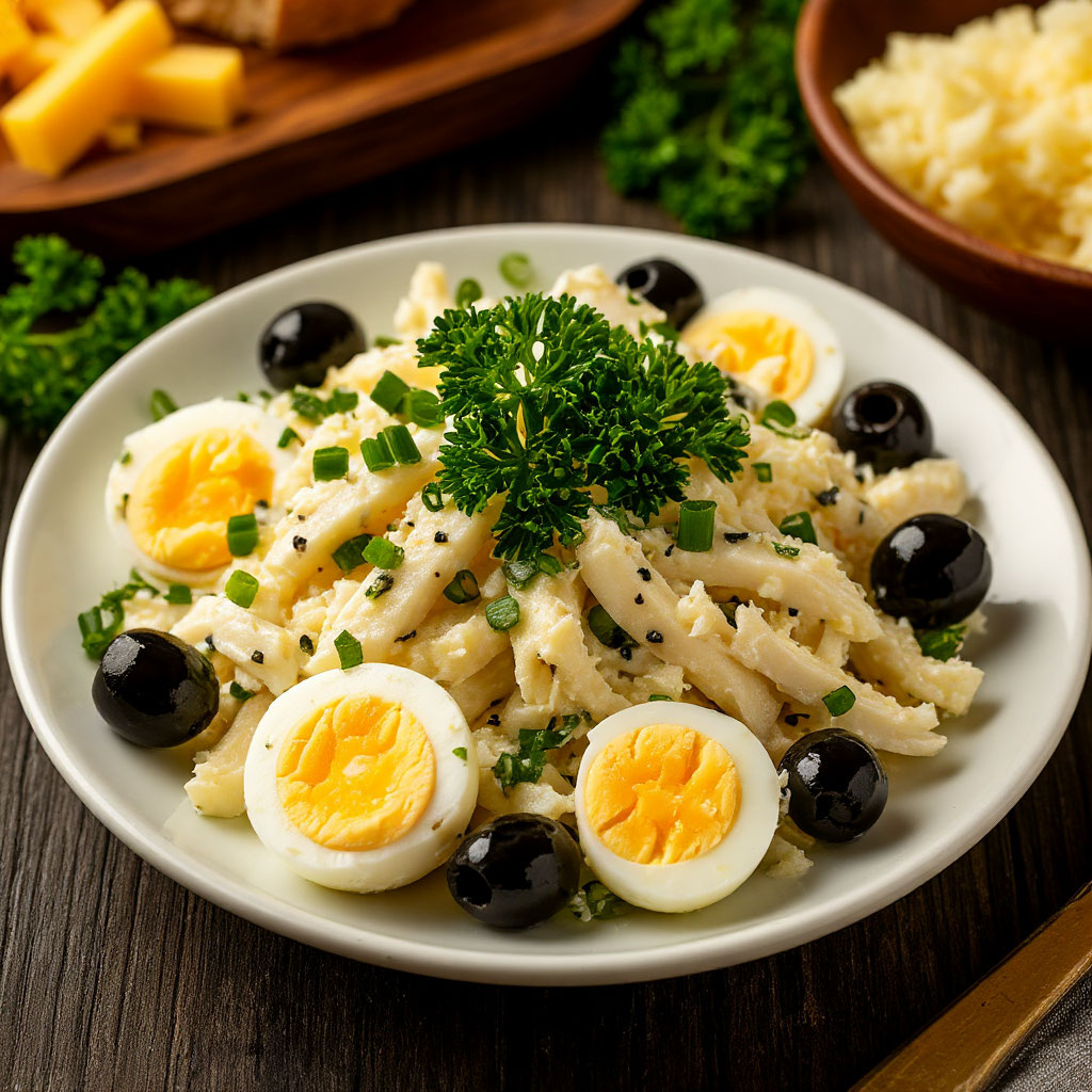 Рецепт салата "Меридиан" с кальмарами, яйцом и сыром