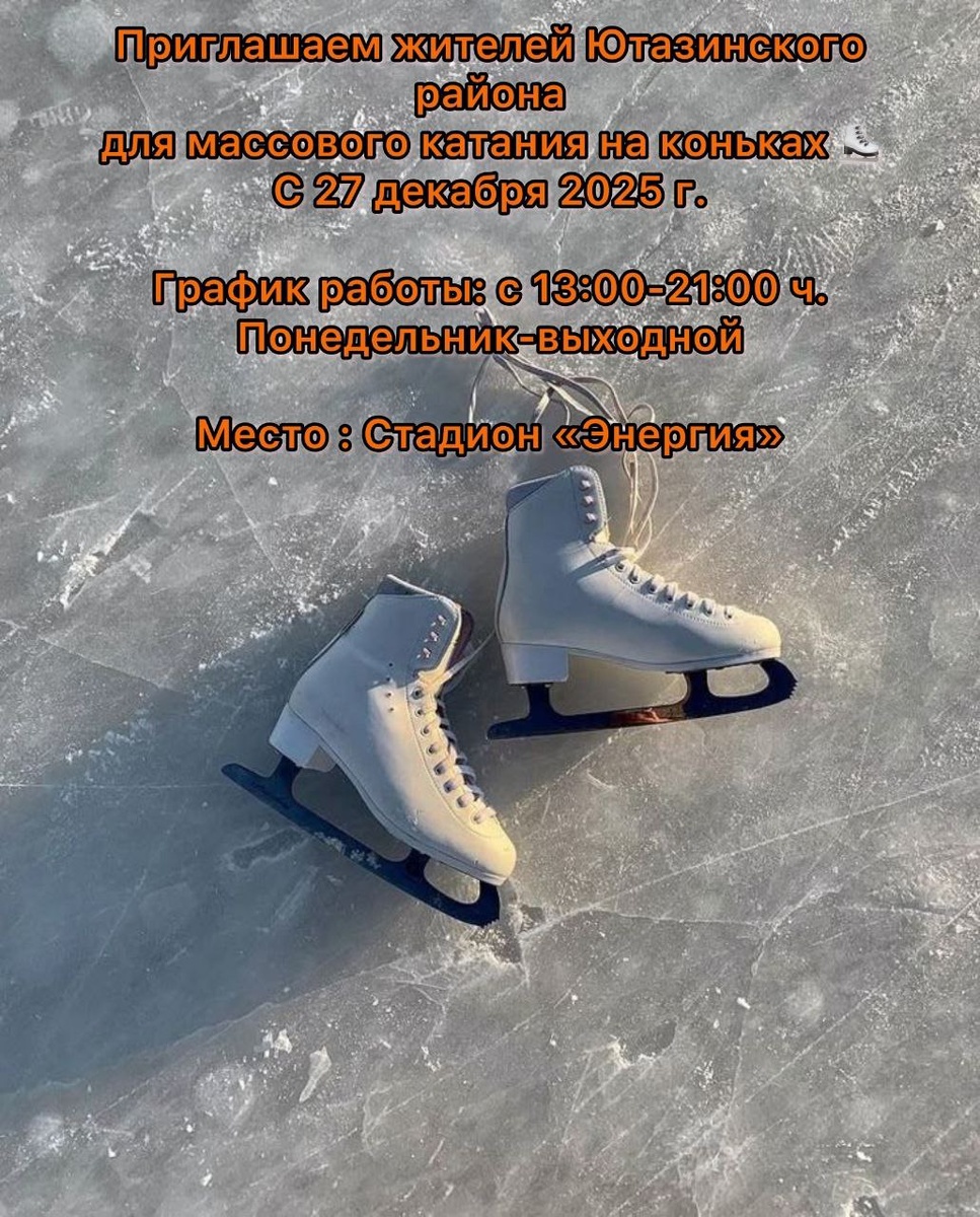 ⛸ПРИГЛАШАЕМ ЖИТЕЛЕЙ ЮТАЗИНСКОГО РАЙОНА ДЛЯ МАССОВОГО КАТАНИЯ с 27 декабря 2025 г.