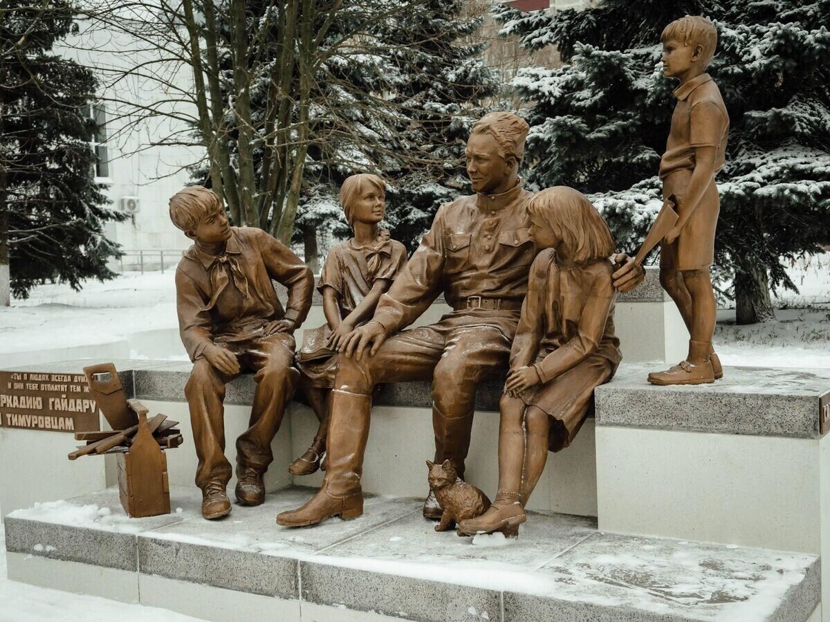 В Курске на площади перед молодёжным центром «Гелиос» открыли скульптурную композицию, посвящённую писателю Аркадию Гайдару и героям его повести — тимуровцам. Торжественное событие приурочено к 85-летию выхода на экраны фильма «Тимур и его команда». Губернатор Курской области Александр Хинштейн, чьими усилиями инициировано создание памятника, отметил символическую связь поколений. Он напомнил, что Гайдар незадолго до войны заложил основы тимуровского движения, вдохновив тысячи детей на бескорыстную помощь. «Тимуровцы помогали семьям фронтовиков, а сегодняшние волонтёры поддерживают семьи участников СВО, участвуют в гуманитарных миссиях. Поэтому мы отмечаем не только юбилей книги, но и преемственность добровольческого движения», — подчеркнул Хинштейн в своём Telegram-канале. Идея установки памятника принадлежит современным активистам — её выдвинула школьница Катя из Льгова, участница «Движения первых». Сама скульптура стала подарком курянам от жителей Самары (бывшего Куйбышева), где в 1
