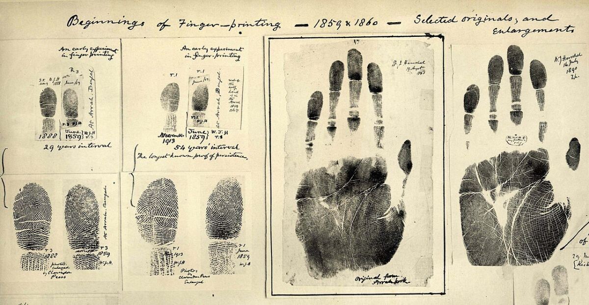 В 1897-м году в Калькутте состоялся первый процесс, в котором судьи встречались с отпечатками пальцев как средством доказательства. Суд не решился вынести смертный приговор, основываясь на отпечатке пальца.