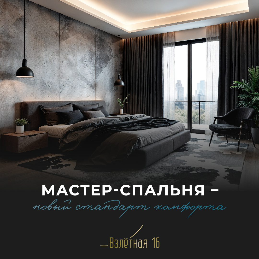 В ЖК «Взлётная 16» часть планировок уже включает мастер-спальни с продуманной связкой «спальня — гардеробная — санузел». Посмотреть планировки и выбрать квартиру можно на сайте.