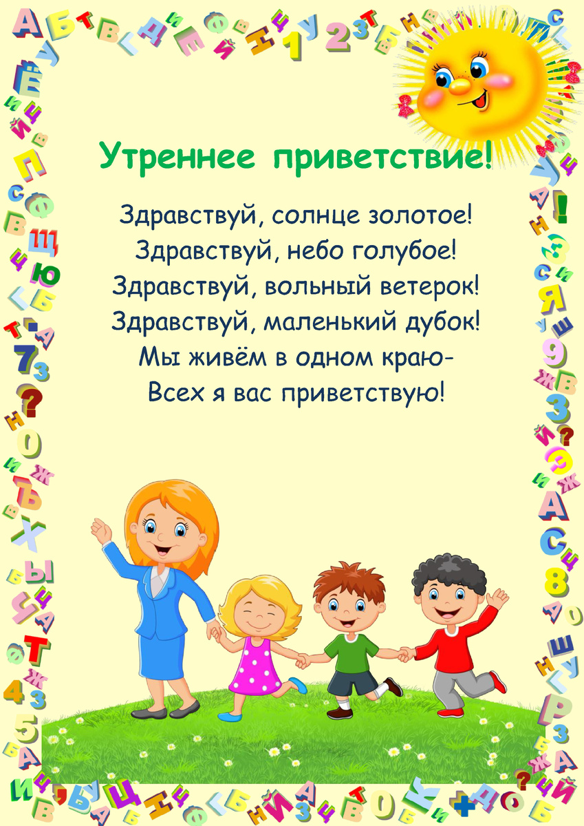 Картотека утренних приветствий, которые способствуют снятию психоэмоционального напряжения, поэтому в утренние часы они особенно необходимы как способ эмоционального настроя на предстоящий день.