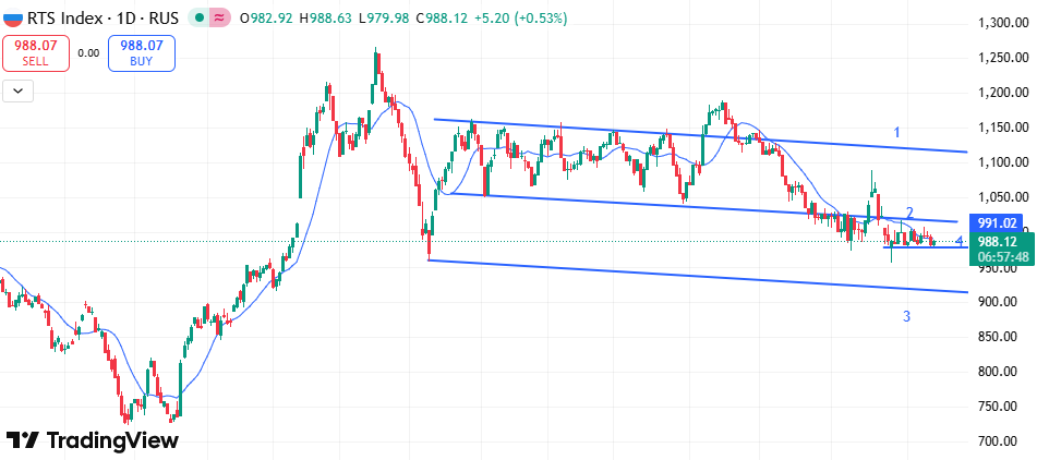 Часть 5. Алгоритм Определяем потенциал движения цены актива – ценовые уровни. Потенциал движения котировок индекса РТС: - Возврат к линии 2: 1025 п. - Продолжение движение к линии 3: 925 п. - Рост до отметки 1037 п. - Снижение до 937 п. Вывод: ценовые уровни находятся в пределах 1030 п.- 930 п. Берем ценовые движение уровни как усредненное между указанными уровни параллелограммом и MA Определяем направление движение цены – купить или продать Пойдем методом упрощения и введем линию сопротивления 4. Не пробьет ее вниз, цена уйдет к линии 2, пробьет вниз, цена пойдет к линии 3. - Текущее значение RSI (13) выше аналогичной ценовой лини – цена не пробьет линию 4 вниз. - Проведем красную линию влево от текущего значения RSI до пересечения с индикатором и поднимем красную линию до ценового графика. Видим, что RSI сейчас оценивает индикатор на отметке линии 2, по цене 1026 п. Внимание! Период расчет RSI 13 включается в себя сравниваемые периоды. Вывод: текущее значение RSI показывает на дви