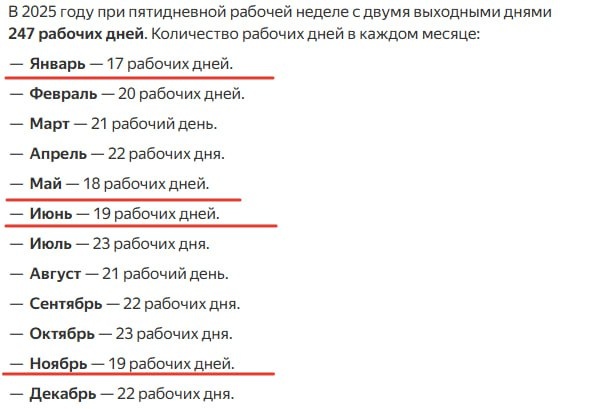 😎 Все предприниматели ругают Январь... мол, в январе много праздничных дней, и бизнес вынужден платить всем зарплату, а выручки меньше — целую неделю гуляем! Но давайте посмотрим на остальные месяцы? Например, в 2025 году Май, Июнь, Ноябрь не сильно отличались от Января — всего 18-19 рабочих дней против 17 январьских! Может, поэтому в 25 году такая жопа у всех бизнесов? (нет!) 🤣 В 2026 году будет, конечно, полегче: Январь будет жестким — 15 рабочих дней — зато в остальные месяцы пахать будем как не в себя! Февраль — 19 рабочих дней. Март — 21 Апрель — 22 Май — 19 Июнь — 21 Июль — 23 Август — 21 Сентябрь — 22 Октябрь — 22 Ноябрь — 20 Декабрь — 22 Всем мир, труд, май! Ой, с Наступающим! 🎅 — 😎 Логинов Про Личный опыт в Digital для B2B: команда, развитие, рост. Бустануть | Стратегия от ЭМИ | Подписаться