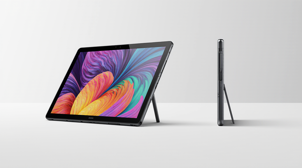 Корпус планшета выполнен из металла, что обеспечивает приятные тактильные ощущения, прочность и долговечность. Дизайн минималистичный и элегантный, без лишних деталей, что делает устройство уместным в любой обстановке — от аудитории до офиса.