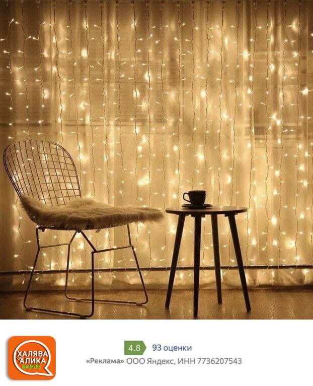 Автоматическая скидка 66% ЗАКАЗАТЬ За такую цену продаются обычные висящие гирлянды. . Гирлянда вешается на занавески или стену и освещает всю площадь поверхности. Она имеет 8 режимов работы: волна, мерцание, вспышка и пр. Гирлянда защищена от воды, поэтому ничего страшного, если на неё попадёт дождь.