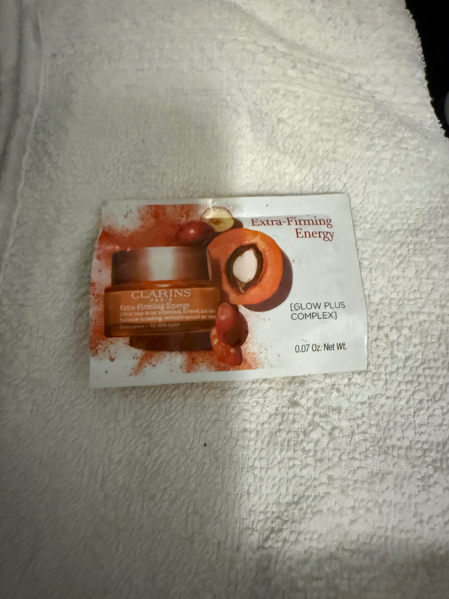 У меня как раз закончился пробник крема Clarins, маленькое саше, которое практически не занимало места: