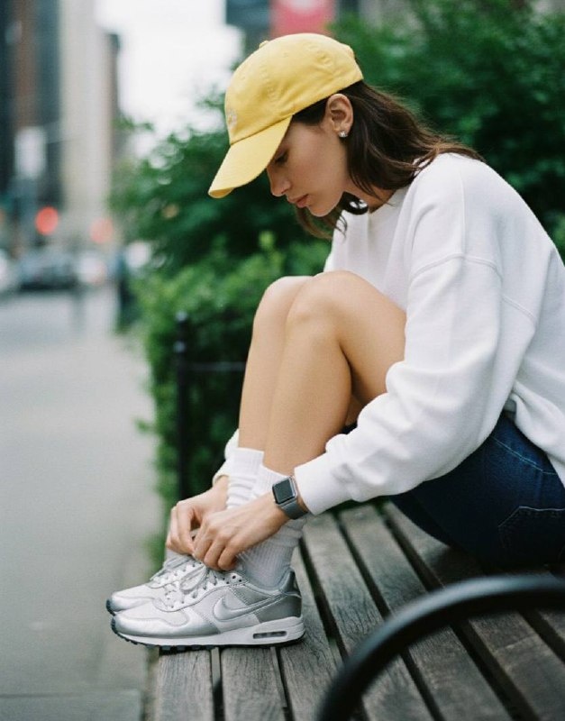 1. заходим в Бот 2. выбираем nano banana 3. прикрепляем ваше фото где хорошо видно лицо и вставляем промпт: Уличная сцена, кадр в стиле стрит-фэшн: женщина сидит на деревянной скамейке в парке, завязывает шнурки. Одежда: жёлтая бейсболка, белый оверсайз-свитшот, тёмно-синие шорты, скрученные белые носки, серебристые кроссовки Nike. Аксессуары: умные часы на запястье, небольшие серьги. Окружение: тротуар, зелёные кусты и приглушённый городской фон с сильным боке. Композиция: три четверти, лёгкий боковой ракурс, фокус на руках и кроссовках, естественная поза. Освещение: мягкий рассеянный дневной свет, прохладные, пастельные тона, лёгкая плёночная зернистость. Камерные параметры (рекомендация для генерации): эквивалент 85mm, f/1.8, низкая глубина резкости, 1/250s, ISO 200. Стиль: candid street photography, editorial, moody minimal.