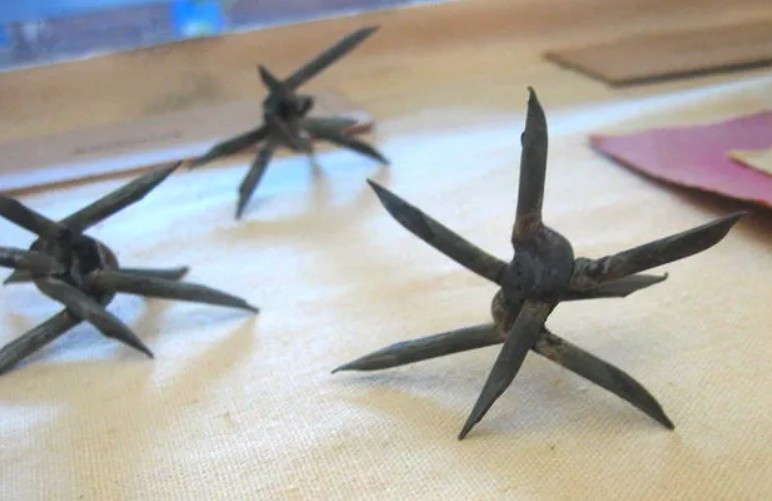 Впервые шипы в военных действиях применил персидский правитель Дарий III в сражении при Гавгамелах, состоявшемся в 331 году до н. э. Противостояла персам армия Александра Македонского, известная своей превосходной боевой конницей. Хотя шипы показали свою эффективность, македоняне одержали победу. Впоследствии они переняли эту тактику и стали использовать шипы-колючки в своих военных операциях. Позже, у разных народов такие шипы получили свои названия.