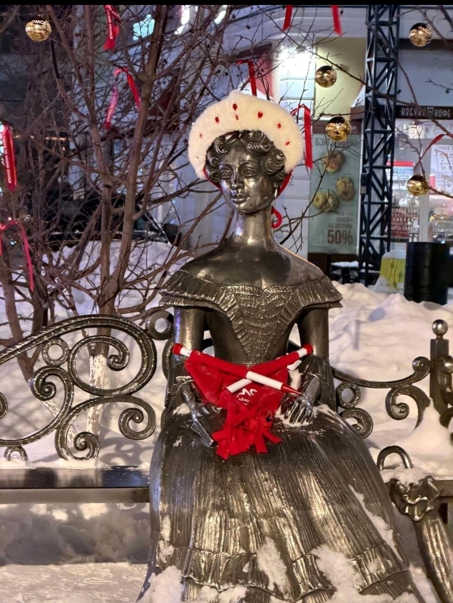 Любочка надела кокошник, Степаныч взял на себя роль Дедушки Мороза, а Городовой и его собачка укутались в шарфы.