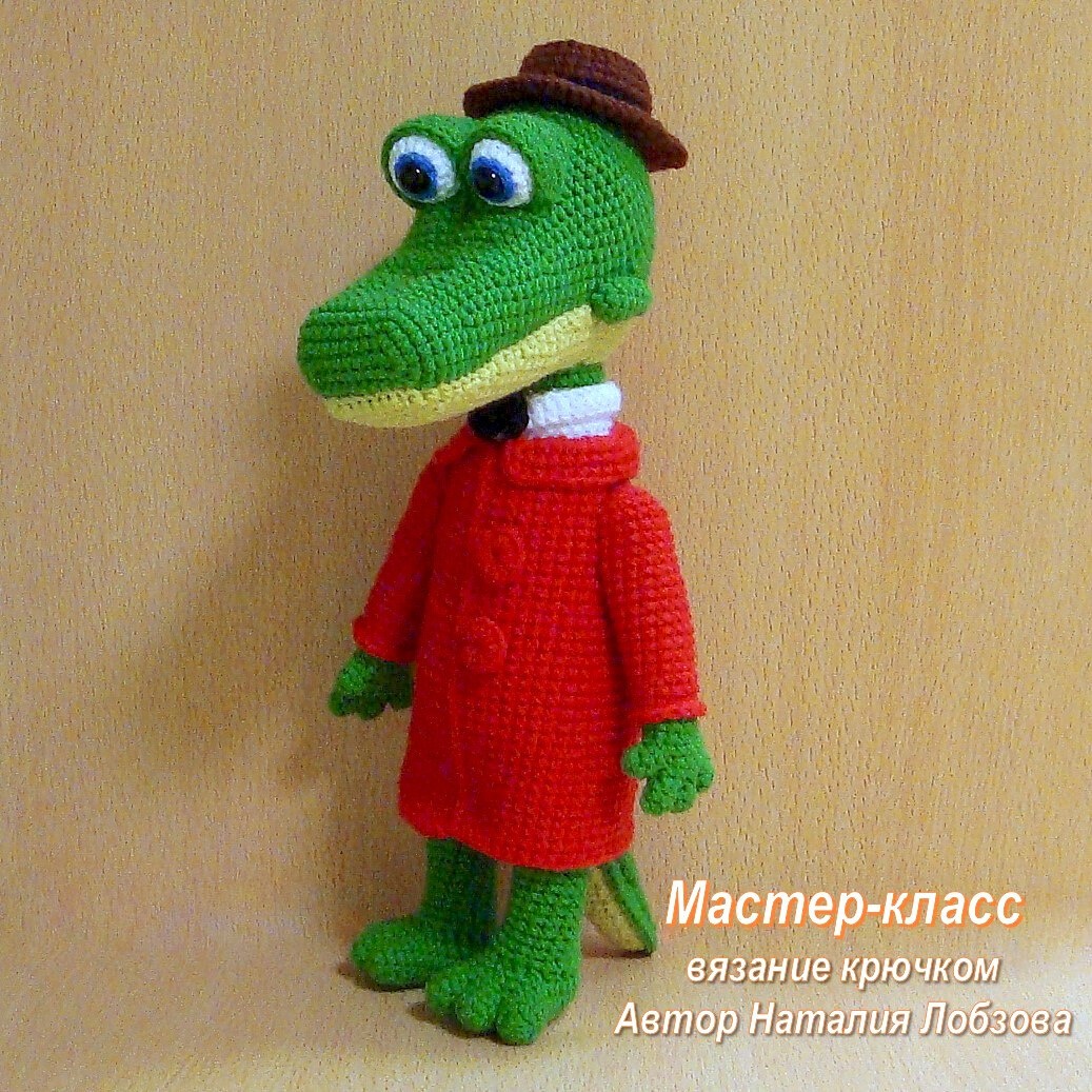 Бесплатный мастер-класс от Наталии Лобзовой по вязанию крокодила по имени Гена крючком. Высота вязаной игрушки примерно 30 см. Для изготовления такого…