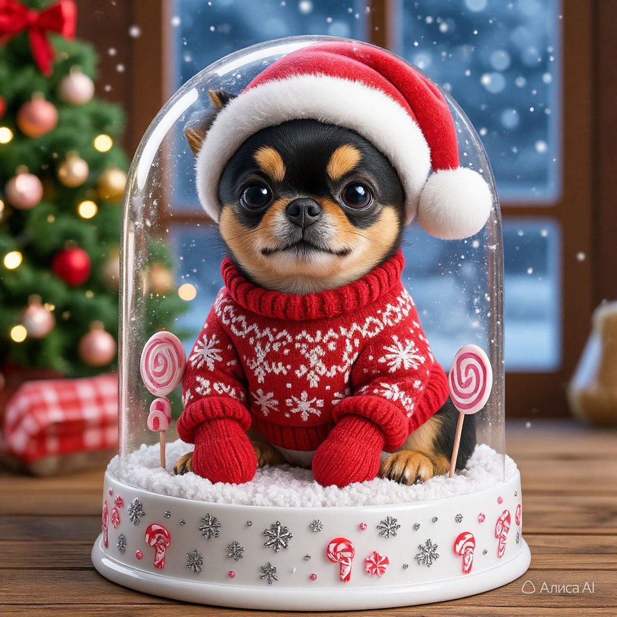 Новогодняя ИИ обработка фотки моего песеля.