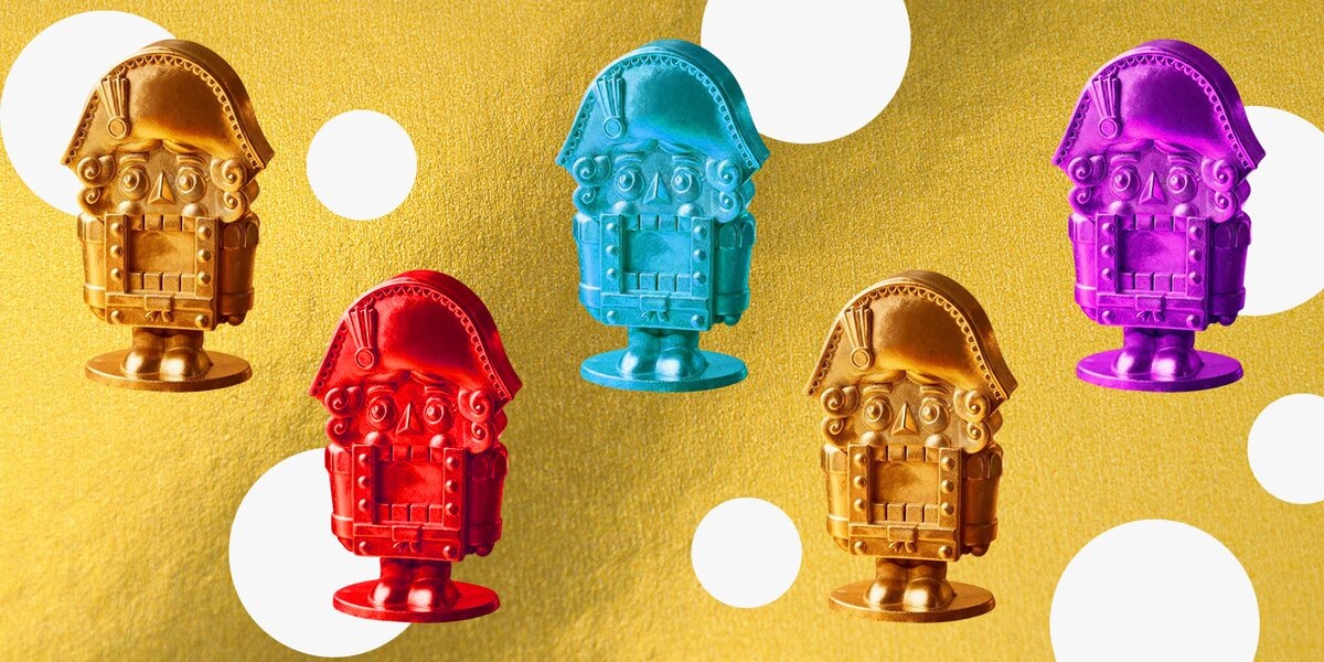 По популярности зимой этот персонаж уступает, пожалуй, только Деду Морозу и Снегурочке. Со Щелкунчиком делают елочные игрушки, проводят детские представленияи даже сладости лепят в форме него. Собрали десять самых красивых в ресторанах Москвы. #СибирьСибирь, 980 рублей Золотой усатый Щелкунчик в виде елочной игрушки. Внутри корпуса — нежный миндальный бисквит, пропитанный сбитнем, темный шоколад и вишня. «Erwin. РекаМореОкеан», 900 рублей Снежный шар из карамели с крошечным шоколадным Щелкунчиком. В основе десерта — апельсиновый кекс с мандариновым муссом и цукатами. Wine & Crab, 1 500 рублей Гофмановский герой на заснеженном барабане. Оба сделаны из орехового дакуаза, бисквита с вишневой начинкой, мусса из вареной сгущенки и нежного шоколада в бархатном велюре. Кондитерская «Кафе Пушкинъ», 3 500 рублей Аккуратный десерт со множеством мелких деталей. Сделали его из темного шоколада и покрыли золотом с блестками. Кафе «Чайковский», 890 рублей Очень нежный и в меру сладкий Щелкунчик. В с
