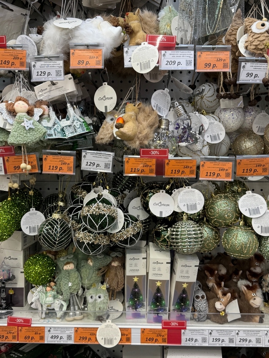 Всем привет! Без особых ожиданий я зашла в предновогодний Галамарт. Действительно ли здесь низкие цены? И можно ли тут найти что-то на подарки? Сейчас покажу! Буду рада, если вы оцените эту статью и подпишитесь. Телеграм: подписаться Яндекс Дзен: подписаться Во-первых, в этом году они красиво развешали игрушки, сгруппировав их по оттенкам. И в целом новогодний отдел получился довольно симпатичным. В зеленой секции мне понравились вот эти блестящие новогодние шарики. Это пластик, вообще все шары в этом магазине из пластика. И плюшевые олени симпатичные! На соседней полке сидели плюшевые гномы. По-моему, аналогичные раньше продавались в ИКЕА. Классные! И не скажешь по ним, что из Галамарта. И символ года - керамическая статуэтка лошадка. Вообще я не люблю вещи с символами года, ведь их сложно использовать в другое время года. Да даже на следующий Новый год. Но вот лошадка - по-моему исключение. Она сама по себе какая-то новогодняя и универсальная. Новогодних игрушек много, но меня они н