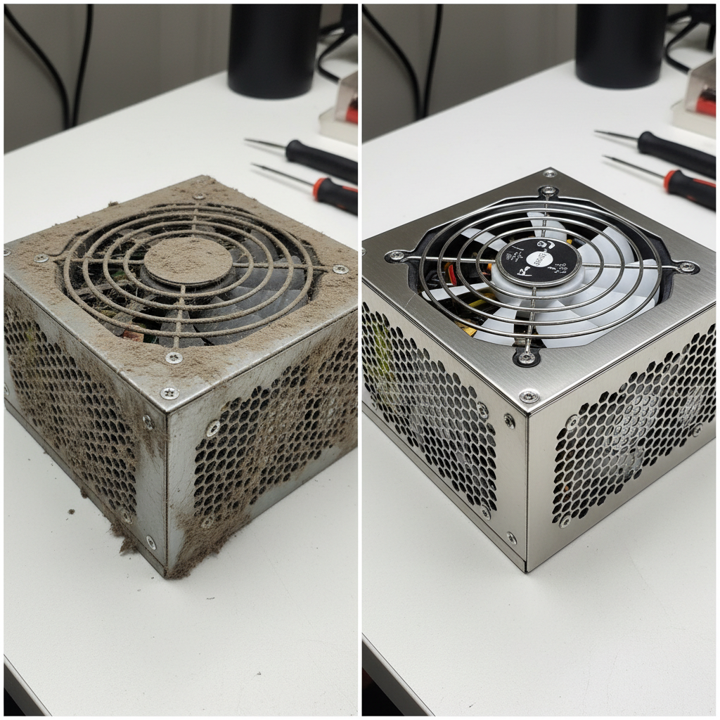 - Накопленная пыль – Главный враг: Блоки питания, особенно находящиеся в плохо вентилируемых корпусах, быстро покрываются пылью. Это приводит к ухудшению теплоотвода, перегреву и, как следствие, к отказу. Длительное повышение температуры может существенно снизить надежность и срок службы компонентов.