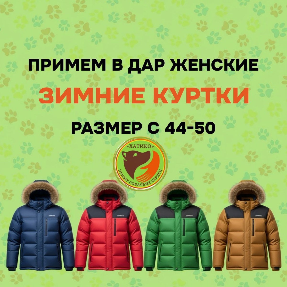 ! Мы с необычной для нас просьбой)) Волонтеры нуждаются в зимних куртках,размер от 44 до 50. В нашем быту куртки волонтеров очень быстро приходят в негодность,поэтому мы с радостью примем в дар куртки в хорошем состоянии. Если у вас есть зимние куртки, которые вы готовы пожертвовать, мы будем очень благодарны! Обратите внимание на следующие моменты: 1.Пожалуйста, убедитесь, что куртки не имеют серьезных повреждений. 2.Очень важно, чтобы замки на куртках были в рабочем состоянии. У нас нет возможности заниматься ремонтом, поэтому мы принимаем только те куртки, которые полностью готовы к носке. Тел для связи 8-951-479-75-89