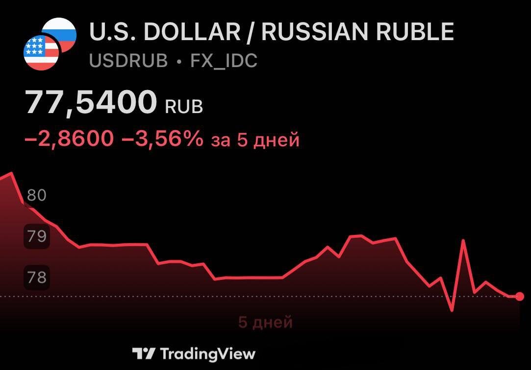 🔻 Рубль/доллар — 77,54 (-3,73%)