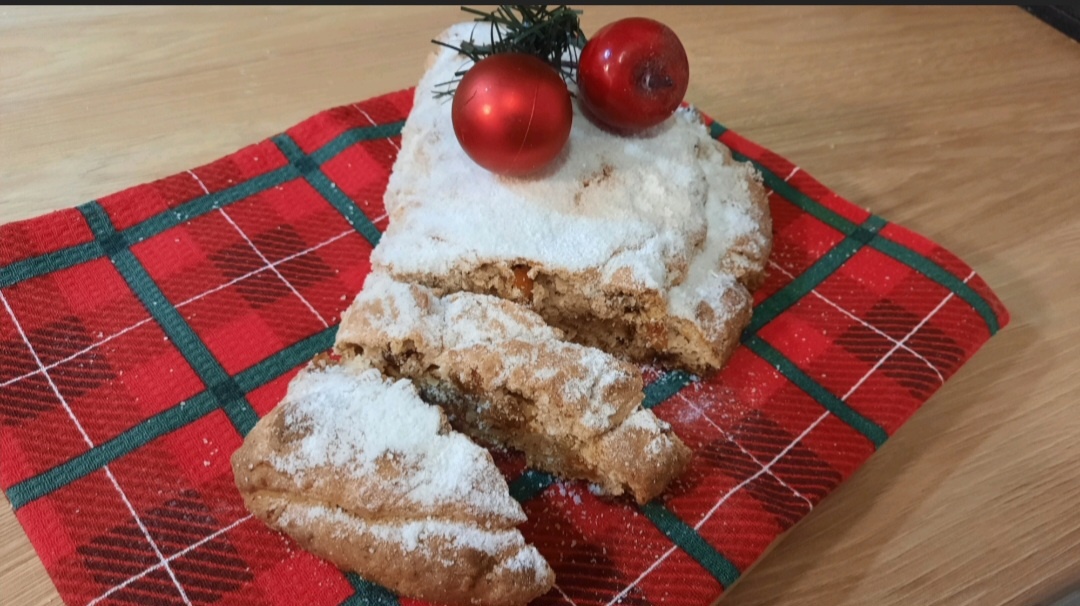 На дворе - предновогодняя и предрождественская пора, а это значит, что пора печь рождественские штоллены. Я пеку с большим количеством изюма, пропитанного ликёром, и с творогом. Что нам для этого требуется? Ингредиенты: Мука (просеян)- 300 гр./ Разрыхлитель - 2 ч.л. / Соль - щепотка/ Творог - 200 гр.(5-9%) / Сливочное масло - 150 гр.(размягч-ое) Яйцо - 2 шт (среднего размера) / Сахар - 100 гр. / Цедра лимона - 1 шт. /Ванильный сахар - 10 гр. Для начинки: Изюм - 200 гр. / Курага(+финики) - 100 гр./ Грецкие орехи - 100 гр. (Подсуш. на сковороде)/ Ликер (ром, коньяк) - 70-100 мл. Сахарная пудра, слив масло для смазывания штолленов. И так, начнём с того, что изюм надо хорошо промыть и обсушить. Сухофрукты- курагу и финики промываем и мелко нарезаем ножом. Грецкие орехи мелко измельчаем ножом. Далее к изюму добавляем подготовленные курагу и финики и всё это заливаем ликёром или коньяком (ромом). Оставляем изюм и сухофрукты пропитываться ликёром минимум на 3 - 6 часов. Затем переходим к