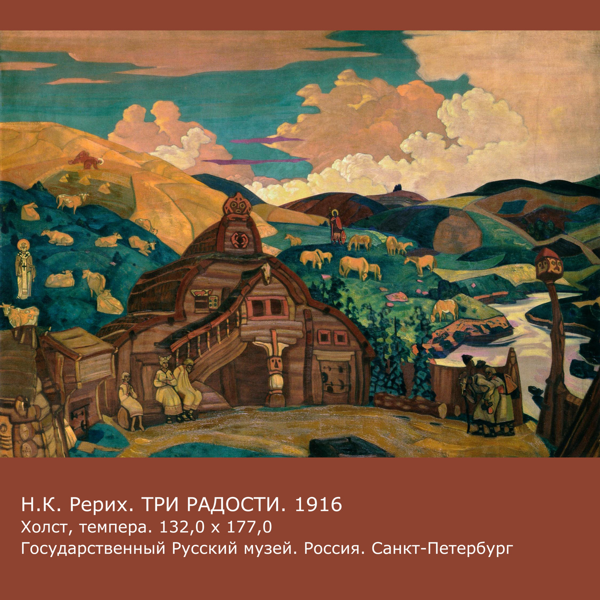 В книге «Братство» сказано: «Странники могут постучаться. Странники могут сказывать о том, что за дальними пустынями, за горами, за снегами в несменном служении пребывают Великие Души. Странники не скажут, были ли они в Обители. Странники не произнесут слова "Братство", но каждый слушатель поймёт, о каком Средоточии Знания говорится. Сеятели добрые идут по миру, когда содрогается человечество. Люди хотят слышать об Оплоте, о Твердыне. Если они и недослышат об уставе, они всё же окрепнут от одной вести, что жива Твердыня Знания. Лотос сердца трепещет от приближения сроков. О существовании Братства радуйтесь!» (Братство. 610) В разгар Первой мировой войны, в 1916 году, Н.К. Рерих написал картину «Три радости». Как и всё, что он делал, это не было случайностью. В эти трудные годы мысли художника направлялись к нашим высоким Заступникам и Покровителям, никогда не оставлявшим Россию в беде. Вглядимся в картину. На крестьянский двор входят вестники — хожалые гусляры. Крестьяне в праздничных