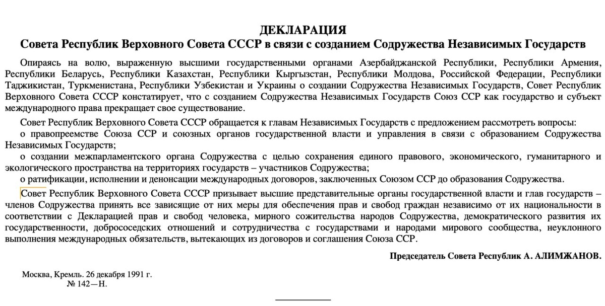 #ДАТА на ❄ «Арктическом Обозревателе» – 26 декабря 1991 года Совет Республик Верховного Совета принял декларацию № 142-Н, в которой было