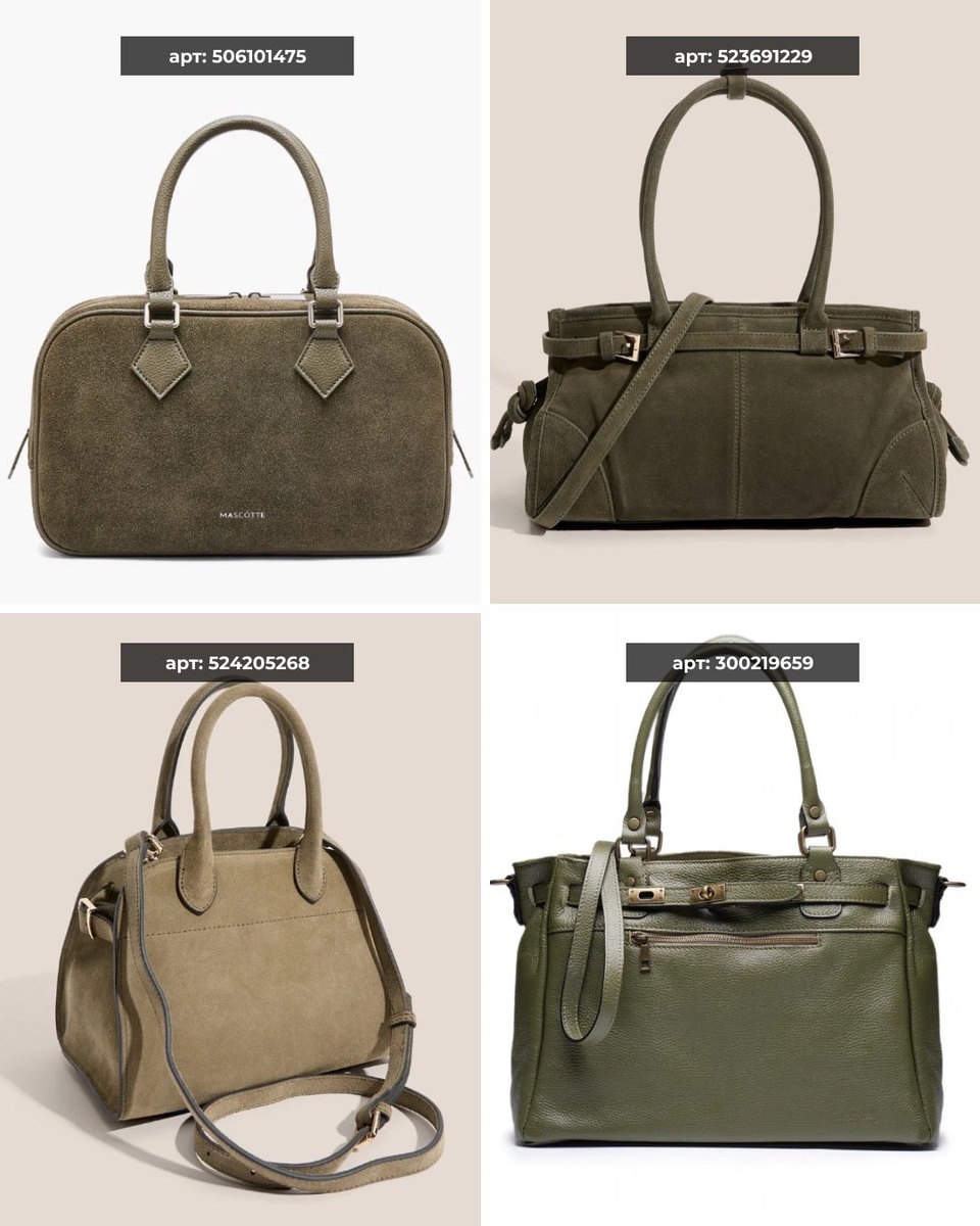 Если вам нужен аксессуар на каждый день и работу — выбирайте оливковые тоуты и саквояжи: они выглядят собранно и долго остаются актуальными. Для мягкой элегантности подойдут коричневые модели на плечо и хобо — они делают образ дорогим за счёт линий и спокойных оттенков. А если хочется женственного акцента — берите багет: он мгновенно добавляет изящества даже джинсам.