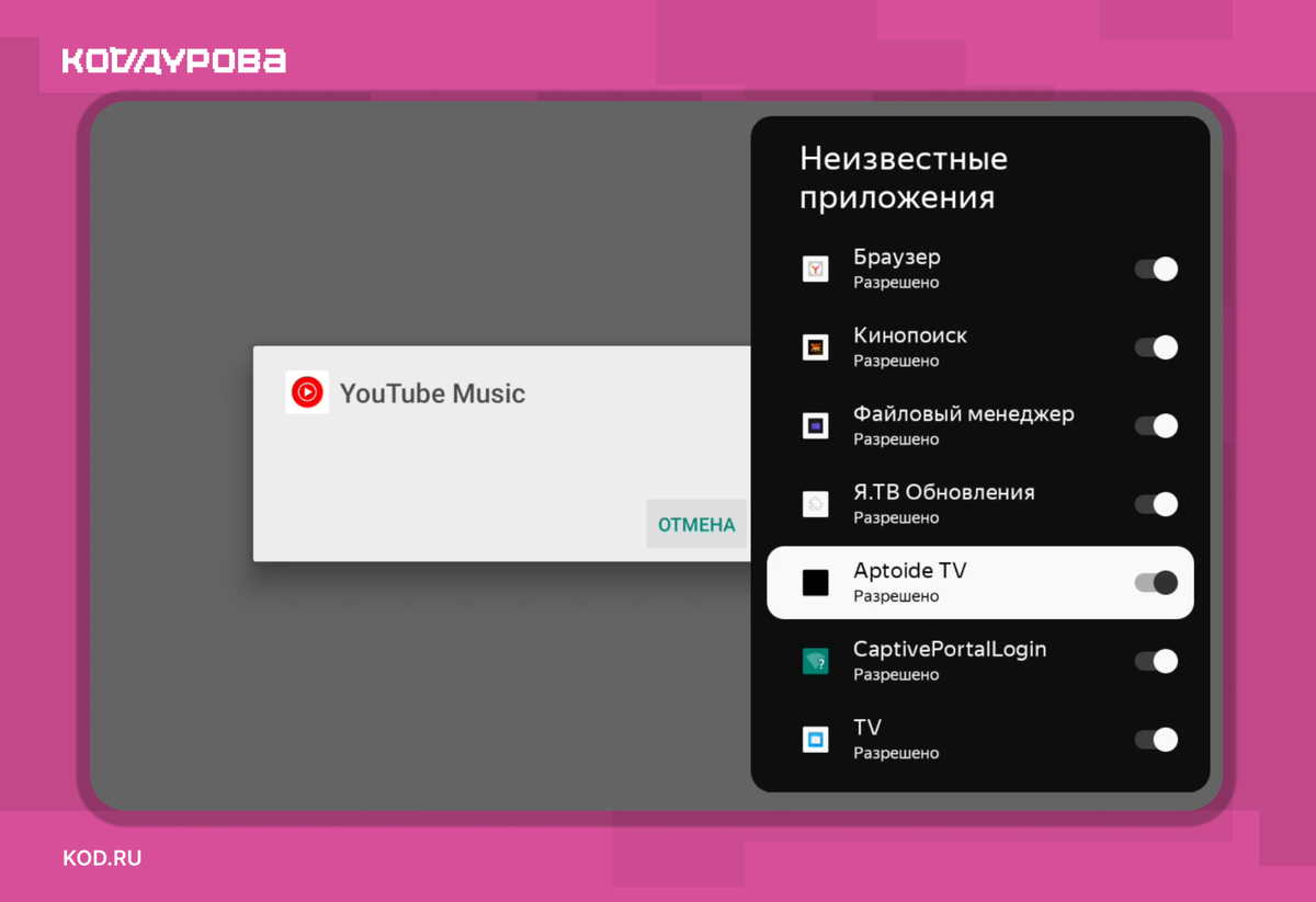 Как было отмечено в начале статьи, альтернативный каталог приложений для Android TV и приставок.