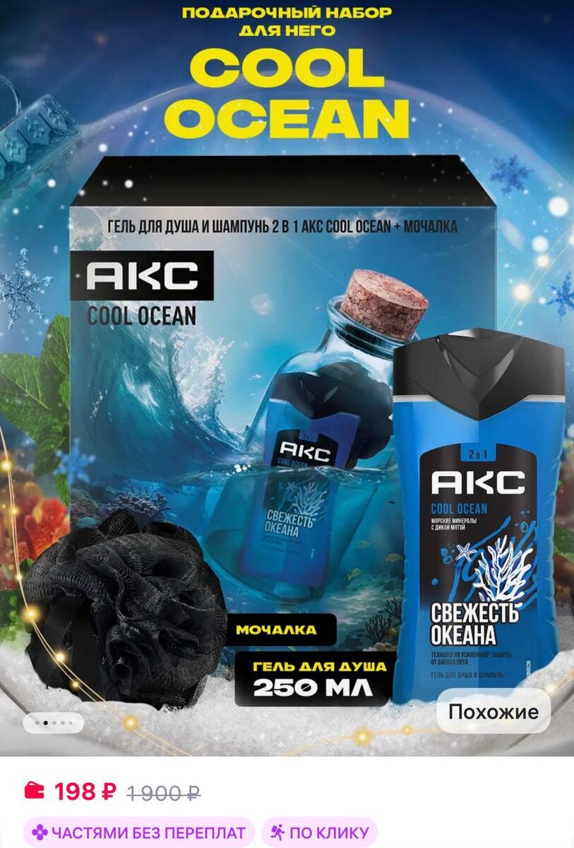 АКС Подарочный набор мужчине гель для душа 2в1 и мочалка