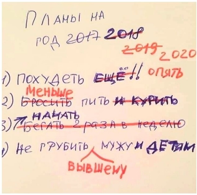 Не нужно с этим бороться. Просто признайте: «В этом году это было. И я благодарю этот опыт (или эту привычку) за то, что он меня чему-то научил. Но сейчас я сознательно оставляю это здесь». Можно даже символически сжечь или порвать листок с этим списком.