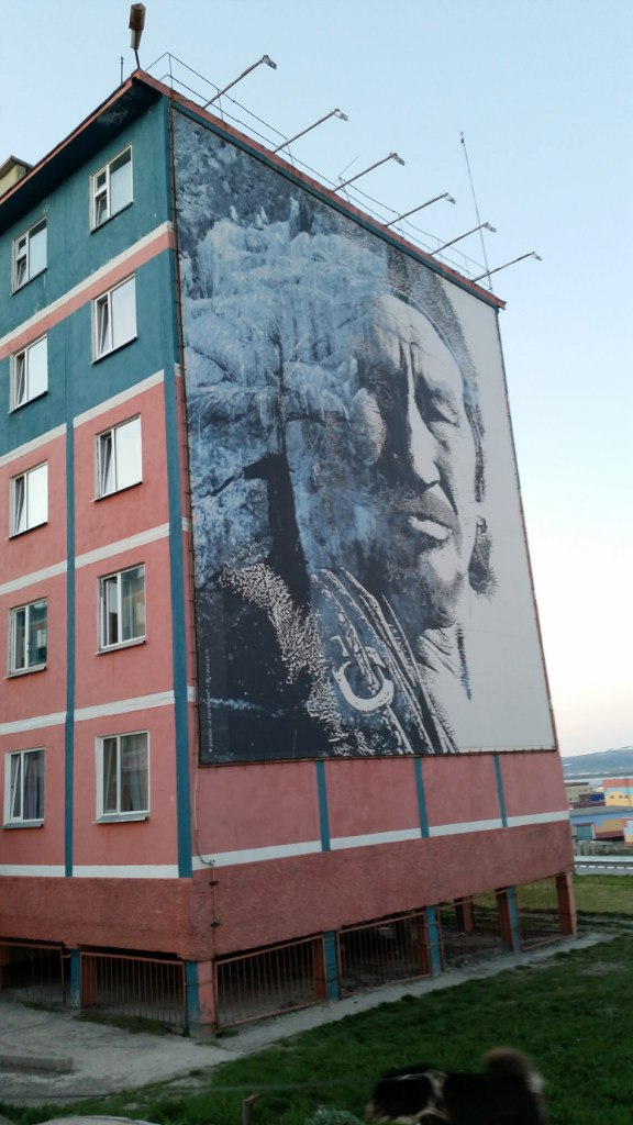 Анадырь - город на сопках, как и все на Дальнем востоке. Здесь может быть ощутимый перепад высот, в том плане, что вам придется то подниматься в гору, то спускаться. Впрочем, такие вещи ощущаются разве что жителями Москвы и других равнинных городов. Еще по всему городу тянутся трубы, так-что постоянно приходится через них перелезать - благо обустроены лестницы. ратите также внимание на то, что, как и везде на Севере, дома тут на сваях. Вследствие этого, чтобы попасть в подъезд жилого дома или просто в магазин - надо подниматься по лестнице. Пространство под сваями как правило огорожено - чтобы не лазили и не кидали мусор. Если вы заметили, многие дома тут украшены картинками проекта "Чукотская" artика" По ним можно изучать чукотский язык:Умк,ы - белый медведь; Ръэв - кит; Ы,твэт - байдара; Ярар - бубен; Лелгын - красная икра. Памятник выдающемуся чукотскому писателю Юрию Рытхэу: Дом культуры: Снова Верблюжка, только днем: На дальнем плане - сопка Михаила с РЛС на вершине.: За водо