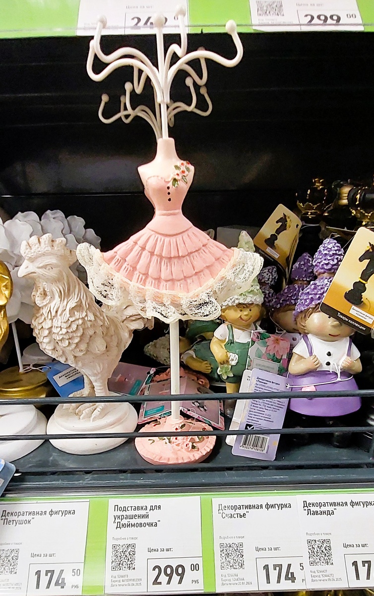Милая Дюймочока - Подставка для украшений, выполнена в виде манекена в нежном розовом платье. Цена 299 рублей