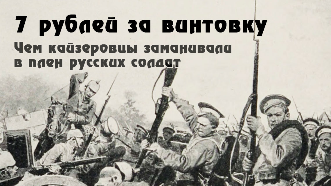 Чем кайзеровцы заманивали в плен русских солдат. Первая Мировая война стала временем расцвета всевозможной пропаганды. Особый упор делался на военнослужащих противника, которых по-разному соблазняли сдаться в плен. А так как идеологически противоборствующие стороны не сильно различались, то зачастую приходилось давить на жадность. «Семь рублей платит германское военное управление за каждое русское ружьё, доставленное русским солдатом германским властям», – гласит надпись на кайзеровской листовке, которую забросили в русские окопы. Далее идёт уточнение: «Пленных в Германии хорошо кормят и содержат». А на обороте размещена фотография: «Картинка из быта русских пленных в Германии». Понятное дело, что брехня. Но чего ещё ждать от вражеской пропаганды? Конечно, солдаты сдавались в плен. Но из тех документов, что мне попадались, картина вырисовывается такой: сдавались или исчерпав все средства для сопротивления, или из-за трусости, или по идейным соображениям. Например, много поляков не жела